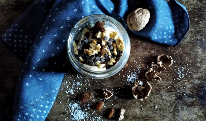 Deve solo riposare in frigorifero tutta la notte e al mattino è pronto, basta aggiungere gli ingredienti preferiti che possono cambiare ogni giorno.